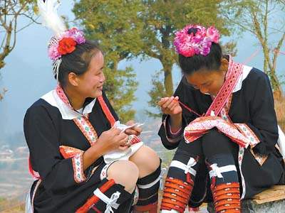 瑶族的纺织印染早为史籍记载。宋代的"瑶斑布"就颇有名气。挑花刺绣瑶族的挑花、刺绣也是自古有名,史籍也多有记载。他们的五色衣服、斑衣花裙,多是靠挑花刺绣制成的。