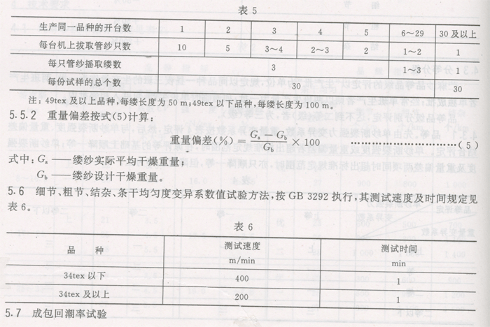 5.5重量变异系数、重量偏差及回潮率试验方法按GB 4743执行,其中线密度采用任选程序3。
