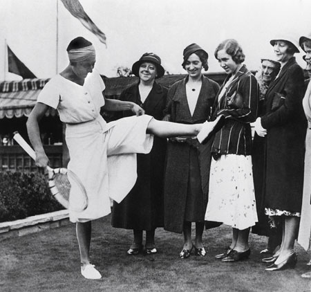 19世纪90年代,风靡一时的网球运动也吸引了更多的注意力。女性杂志开始为一切球场上可行的时髦设计大打广告。但直到1919年,法国超级网球明星苏珊-朗格朗为网球裙做出的改进,才真正成为一座里程碑。她是第一位穿着过膝短裙上场的女子选手。争论不可避免,但潮流也无法逆转。