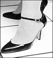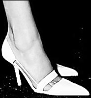 它的经典式样是:细跟、浅口——而且浅到“暴露趾缝”,这样方显性感和女性化,惊艳得引人回头。鞋面开得太高,鞋跟又太粗,没资格称作标准的“潘普鞋”。