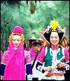 苗族女子的头饰可以说是中国少数民族女子头饰中最丰富、最漂亮的,它反映出浓郁的民族习俗风尚和古老的文化传统,是崇拜图腾文化和农耕文化相结合的产物,又是富有、婚嫁等象征性的标志。丰富的银饰、绚丽的花衣也构成了苗族身体装饰的独特风貌。