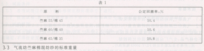 3.2 气流纺苎麻棉混纺纱的公定回潮率以纯麻公定回潮率12%及棉公定回潮率8.5%按混纺比例加权平均计算。