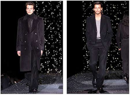 大量使用相当合身的剪裁及伸缩布料,呈现律动流转间清新顺畅的线条,Boss企图为他坚持的设计理念注入更具吸引力的混合元素。2004.05秋冬出现了一股很强的趋势,就是从头到脚全部单一色彩的设计,Boss也是带领这股风潮的其中一位,从全白到全黑,甚至是咖啡及烟熏灰,Boss将这股head -to- toe的理念发展的淋漓尽致。所有看似正经却又充满性感特质的结合,在Hugo Boss的秀场上逐一发现。