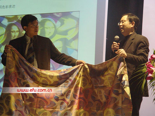 吴教授和赵丰教授在现场展示了将数码结合到织锦技术中的样品,同时证明了通过科学与艺术结合的方法来发掘中国古代织锦的艺术真谛,把握其应用价值所在,为现代织锦的研究和开发提供了良好的借鉴。