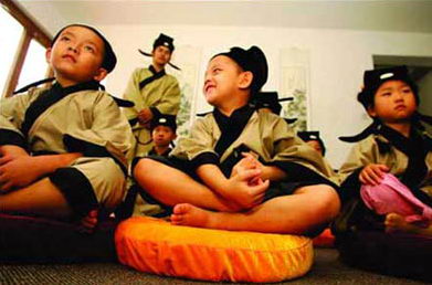 一群三五岁的孩子,穿着汉服、拜着孔子、诵着古文、练着武术……此情此景发生在福田区景田社区一民宅内,昨日上午, 深圳首家童学馆开课。“现代私塾”的教授方式引发家长的议论:孩子扮作古人模样学习,到底是否真正继承了传统文化,还是一种作秀?