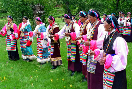 走进藏族同胞的节日盛会,你就如走进一个五彩斑斓的神气国度,她们那做工精细、颜色多变、装饰精美的民族服装、饰品,无一不让每一位初次来到这里的客人啧啧称奇…… 甚至你会觉得这不比大都市的时装发布会逊色……