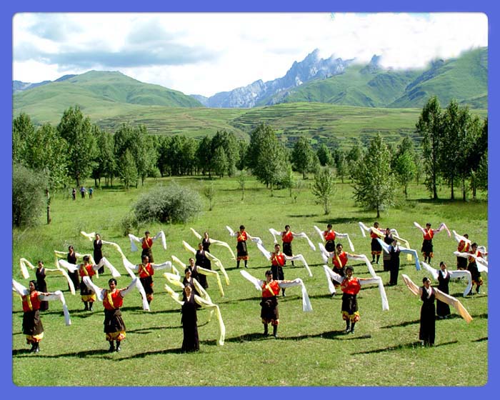 这里是一个歌舞的海洋,在每一个角落,不分男女老幼都在尽情的唱着…尽情的跳着… 这也正是藏族同胞热情、豁达的最真实写照。在这里有一句俗语“能走路的人就会跳舞;能说话的人就会唱歌”这话一点不假,也正是在这里,你才能真正领略到什么是“原生态”;什么是“对酒当歌”……