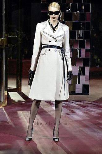 此外,不能不提的就是本季的女鞋系列,款款致优,美不胜收,高档的鳄鱼皮、蛇皮、鳗鱼皮革,无论是配置露趾还是尖楦的设计,在蝴蝶结、有色宝石、金属练的陪衬下,都是04年的至in潮流鞋款,纵使每双双的高度都甚为惊人,但管他三七二十一,就是非买不可!
