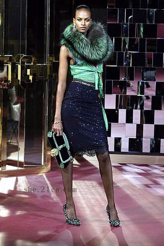 而这一次的提包配件,有了Super Item,名为‘IT包’的肩背包是DOLCE & GABBAGA秋冬的强力主打星,配合DOLCE&GABBANA商标连接而成的纯金金炼提把,同时在边缘还别上一只镶有宝石的大型别针,怀旧中释出强烈的华贵气氛,华气十足。