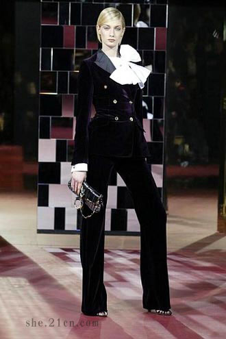 每一季作品都有相当水准演出的义大利设计师组合DOLCE&GABBANA,今年秋冬,则同时玩起女人味与阳刚味的戏码,又再次突显了这对双人组的诠释功力,透过风格的对比交错,呈现出极为协调的冲突美。