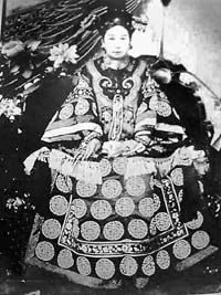 作为清晚期宫中后妃便服,氅衣改变了满族传统服饰长袍窄袖的样式,迎合了道光、咸丰以后的晚清宫廷生活追求豪华铺张、安逸享乐的风尚,很快被认可,成为后妃们必不可少的日常服饰之一。(见右上图慈禧太后照片)