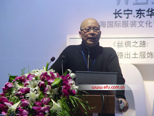 首先由东华大学教授包铭新对服饰复原研究项目进行了总体的介绍,包教授介绍说:“本次项目的主要工作在于搜集己公开发表的丝绸之路沿线历代服饰资料,选出其中具有代表性的一些出土服饰标本,从出土服饰的结构入手,在文物考古学严谨考证分析的基础上,以实物制作的开式进行结构复原,以此展示古代丝路服饰的风采。”