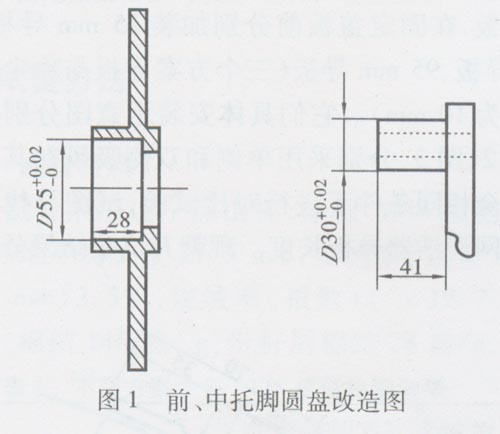 首先,我们把盖板前、中托脚圆盘由含油轴衬改为106滚动轴承,每个圆盘中2只,托脚根据相应尺寸和圆盘配套(见图1);其次,我们把盖板后托脚圆盘由含油轴衬改为205滚动轴承,每个圆盘中1只,后圆盘轴也根据相应尺寸和圆盘配套(见图2)。