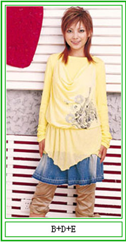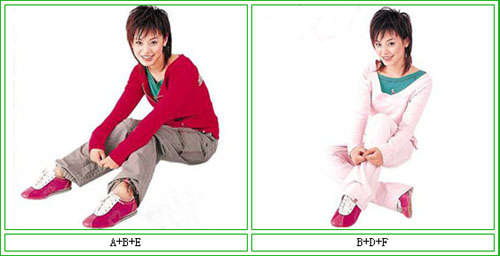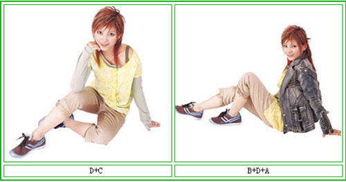 (右):B+D+F 粉粉嫩嫩的色彩让我看上去更加可爱了。上衣和裤子均为淡粉色,所以要配上一件绿色的上衣,会显得更加出彩。
