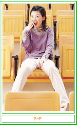 (右上图):B+E 优雅的紫色针织衫和灰色紧身棉衫组合在一起让人觉得很文雅。