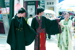 嘲笑、讥讽、蔑视没能熄灭她内心燃烧着的热情,今年3月,她从沈阳买来一套古典汉服带到了大连,这颗“照明弹”准备在大连夜空上燃烧一次。这一次,她调动了多名和她有共同志向的大连大学人文学院的学生参加。6月18日,以她为首的5名学生穿着古典汉服走进了大商步行街,闯进了大连人的视野。瞿秋石一面对行人展示汉服的美丽,一面向行人宣传华夏文化的精深博大,尽情张扬着祖先的荣耀。瞿秋石主动走近身边的行人,热情地为每一个有疑问的人回答关于汉服、关于中国传统文化方面的问题。有人走上前来,仔细打量了一番她们身上的衣服后,疑惑地问:“你们穿的是日本的和服还是朝鲜的服装?”