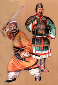 秦汉服饰 秦代是我国历史上至今资料最全面、最准确、最详细的朝代,这有归功于秦始皇陵兵马俑的发现。从目前在陕西临潼一、二、三号坑内发掘出土的陶俑来看,这些兵马俑的雕塑手法极为写实,不仅人物神态自若表情栩栩如生。秦代出土的兵俑分为军俑、军吏俑、骑士俑、射手俑、步兵俑驭手俑积累,他们的铠甲服饰装束表现出森严的等级制度。本土即为西汉将帅军戎服饰复原图。
