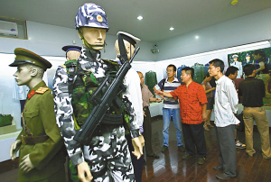 本次展览展出的军品既有镌刻着革命前辈赫赫功绩的奖章、证章;也有体现国威军威的系列军服;还有记载着战火纷争年代的手榴弹、地雷等。在展品中,各个时期的威武军装特别吸引人的眼球。