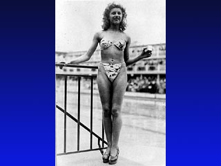 2006年是比基尼泳装“诞辰”60周年。在过去的半个多世纪里,比基尼泳装一直成为女性时尚服饰的标志。近日,在比基尼泳装的诞生地法国举行了隆重庆祝活动,纪念20世纪世界服装界这一最伟大的“发明”。