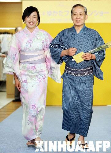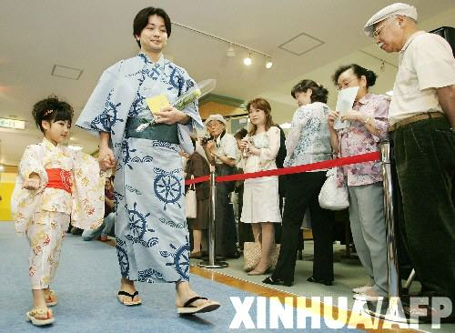 ,在日本东京的三越百货公司里,身着和服的父女参加父亲节和服展示秀。10对父女参加了这次和服展示秀。