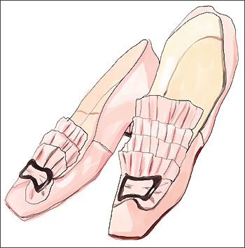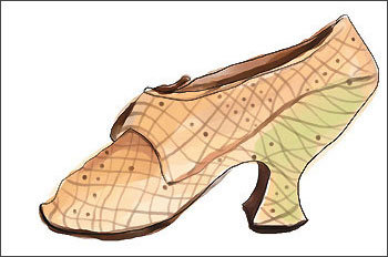 18 世纪:由17 世纪末起,人们开始尝试制造纤细的鞋跟,可惜支撑力不足,唯有加宽鞋跟的顶部以连接鞋底,到了18 世纪后期高跟鞋的高度渐渐回落,取而代之是加上丝带及蝴蝶结的鞋子。