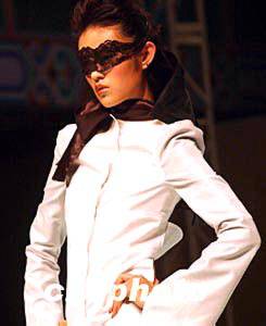 韩国科菲亚国际时装艺术设计学院学生田智恩采用丝绸网眼花边面料,创作辉煌古代中国为主题的时装,在今春北京T形台上展示传统与时尚。
