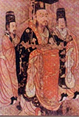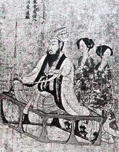 戴冕冠、穿冕服的帝王(阎立本《历代帝王图》局部)。阎立本是唐代杰出的画家,曾担任过朝廷的要官。他常配合唐代的政治事件作画,创作了许多重大题材的作品。据文献记载,阎立本曾为唐太宗画过像,并直接参与了唐代官服制度的制定。所以,他所画的帝王服饰比较接近现实,具有一定的可靠性。冕冠,是古代帝王臣僚参加祭祀典礼时所戴礼冠。用作皇帝、公侯等所穿的祭服。冕冠的顶部,有一块前圆后方的长方形冕板,冕板前后垂有“冕旒”。 冕旒依数量及质料的不同,是区分贵贱尊卑的重要标志。凡戴冕冠者,都要穿冕服。冕服以玄上衣、朱色下裳,上下绘有章纹。此外还有蔽膝、佩绶、赤舄等。