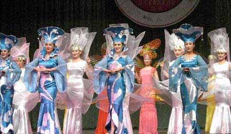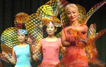来自大连的中老年人在进行服装表演,她们的年龄大多在60岁以上。为欢庆传统节日端午节,辽宁省舞蹈家协会当日组织全省各地群众举行表演大赛,一些老年人在大赛上展示了她们独特的风采,让观众大开眼界。(摄影/郭大岳)