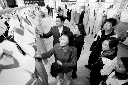 白衬衣、格子裙,黑白、粉红相间毛线衫……在韩、日剧中,我们经常可以看到这样青春时尚的学生装。事实上,在昨天的展示活动上,由14家企业提供的113款校服中有10余套都是不错的套装,不过学生和老师却并不看好。在昨天前来选校服的12所学校中,只有一所中学选择了套装。