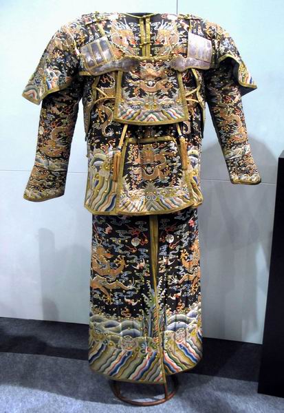 清乾隆御制革丝黑地海水云龙纹仪仗用甲胄在拍卖会上亮相,它以1468万港币被内地一收藏家拍得。
