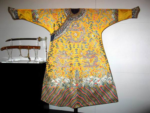 清乾隆御制镶珠黄缎十二章纹龙袍在拍卖会上亮相,它以1468万港币被一私人收藏家拍得。