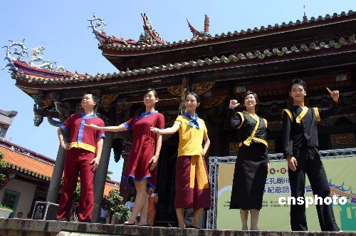 由台北市民政局派出的孔庙工作人员今后将通过仪态训练,并穿着“儒风”、“创意”兼备的这一系列工作服来服务公众。