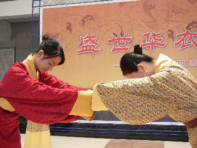 现场,记者还遇见了老包和应景小蝶(网名)这两名汉服爱好者,他们身上的服饰都是自己专门定作的,两人都是网上提倡汉服的“领军人物”。老包说,每每看见日本服饰和朝鲜服饰流行,就觉得汉族也应该大力推广自己的民族服饰。应景小蝶说,汉服兼有高超的美学工艺与深厚文化底蕴,爱好汉服,不仅是民族感情的具体表现,也是寻根之旅。省博物馆负责人介绍,今天所说的“汉服”其实已经不是指汉朝服饰,而是把古代汉民族服饰的特点都融合在了一起,而今天能有很多爱好者去发掘和探索“汉服”的款式并推广它,本身就是一件值得肯定之举。