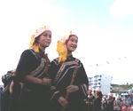 妇女装分冬装和夏装。冬装多是青色。上身着无领斜襟衣,右衽,在袖口、衣领等处皆镶花边或阑干,下身短褶裙及膝,系围腰着内裤,裹绑腿或腿套,足踏布鞋。夏装为黑、蓝等色对襟衣,窄袖敞胸,内束绣花围胸巾。