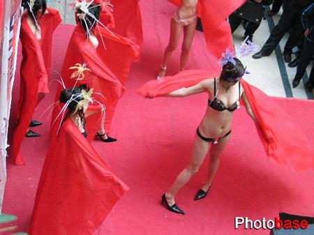 3月8日,在安徽阜阳市一家商场,模特在进行“内衣秀”展示。当日是“三八”妇女节,一些商家竞相开展针对女性的促销活动。在活动现场,模特穿着各种样式的精美内衣,穿梭在店堂内的T型台上,吸引了众多目光。模特们的“火热”表演为初春的城市增添了一抹暖意。